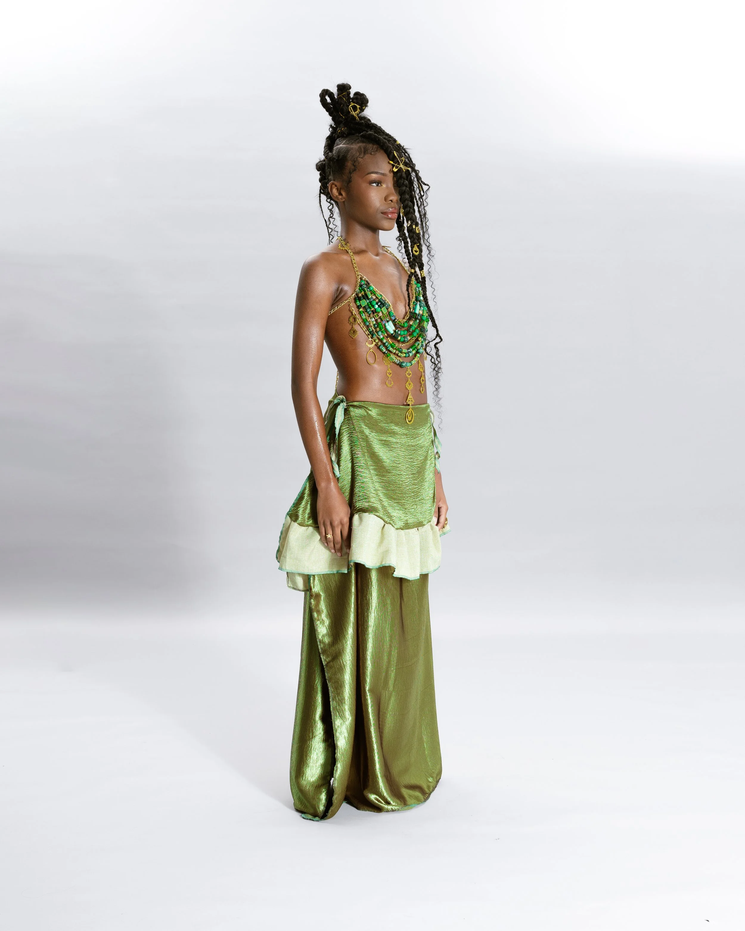 Beaded Top $400.00 Hooded Bodycon Dress $175.00 Maxi Skirt $125.00 Peek-a-boo Pants $100.00 Cowl Top $75.00